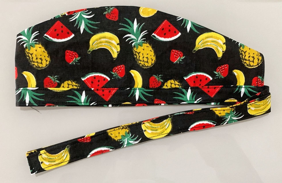 As medidas a seguir, referem-se à faixa mais larga da touca (que fica em contato com a testa - medida vertical):